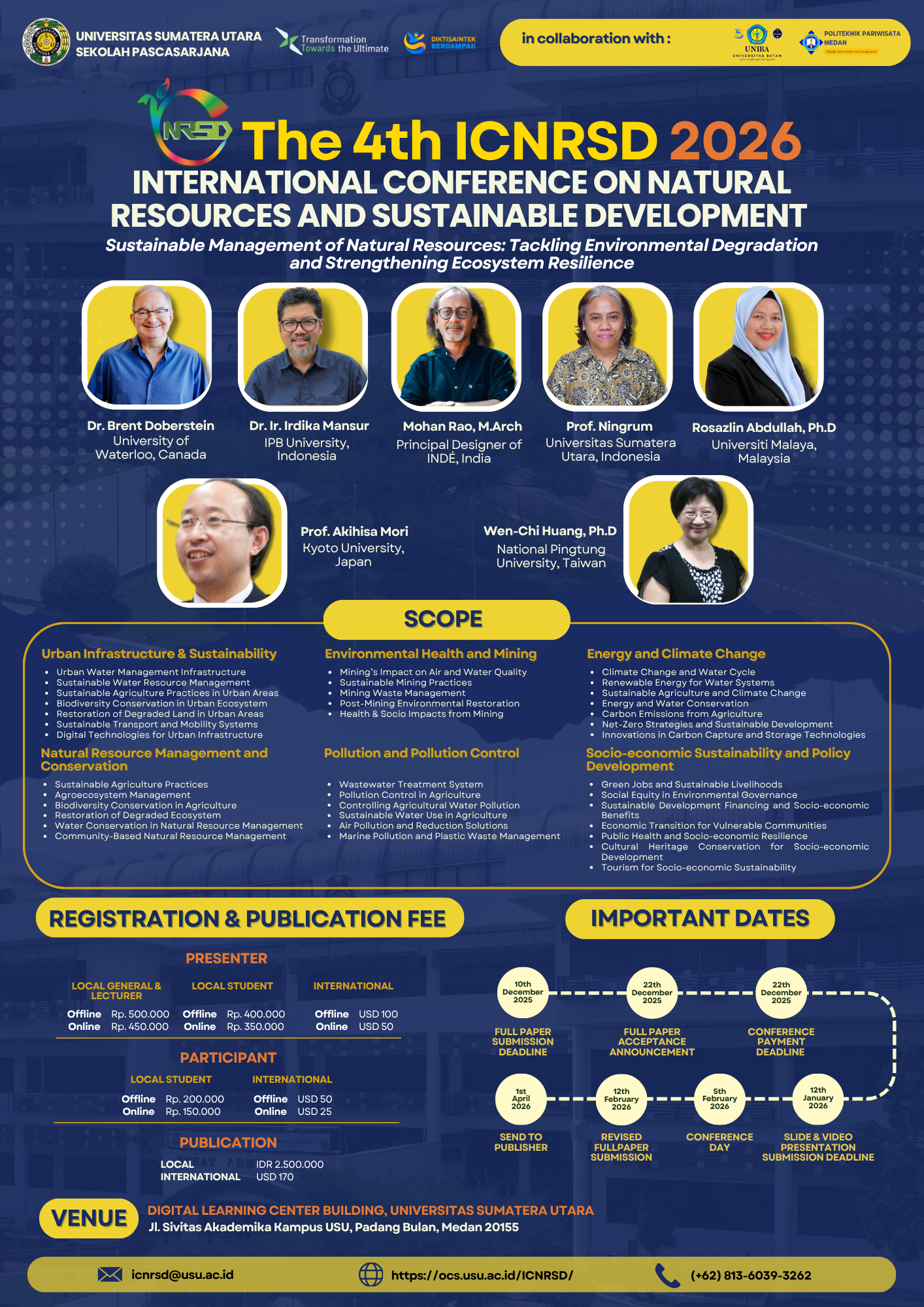 Development with a modernization perspective is often hailed as the path to progress, but in practice it often leads to human exclusion, widens social disparities, and accelerates environmental degradation. The primary focus of modernization on economic growth and industrialization has overlooked human dimensions such as social justice, community participation, and environmental sustainability. Therefore, a paradigm shift in development is needed toward sustainable human development. This conference welcomes experts, researchers, students, and practitioners to submit theoretical, empirical, and practice-oriented papers that engage critically various aspects of collaborative governance and its application in human development in Indonesia.